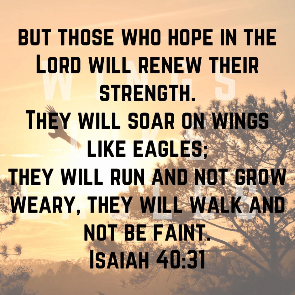 I found this verse really inspires me! Especially when it says that when we hope in the Lord we “will run and not grow weary.” It encourages me to carry on obeying Jesus, even when I’m tired, because God has promised to give me strength.